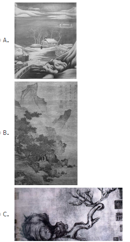 “文人画”的创始者是唐代王维,以下属于王维的作品是( )![]()
