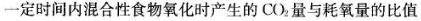 D、一次呼吸中,呼出气和吸入气毫升数的比值" />