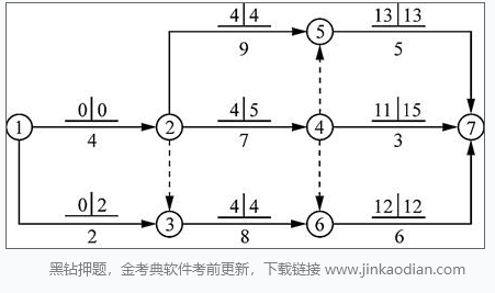 某工程双代号网络计划如图10-2-2所示,图中已标明每项工作的最早开始时间和最迟开始时间,该计划表明( )。