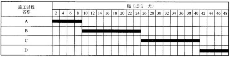 某工程由A、B、C、D四个施工过程组成,施工顺序为:A—B—C—D,各施工过程的流水节拍为:tA=2天,tB=4天,tC=4天,tD=2天。施工单位提出的施工进度计划如表6-3所示。施工工期为48天。监理工程师对施工单位的施工进度计划审查后,认为工期太长,建议组织非节奏流水施工,以便进一步缩短施工工期。施工进度计划表表6-3;