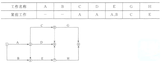 根据下表给定的逻辑关系绘制某分部工程双代号网络计划如下图所示,其作图错误的是()。