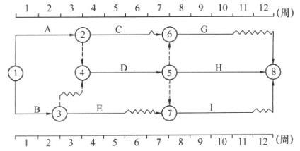 某工程双代号时标网络计划如下图所示,其中工作B的总时差为()周。