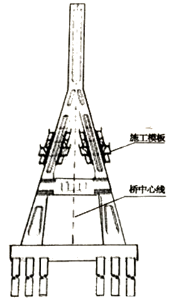 编制索塔施工方案时,施工单位根据本桥横梁较少的索塔特点,对劲性骨架挂模提升和爬模两种施工方法进行了比选,最终选择了适合本桥特点的施工方案,索塔施工示意图如下图所示。