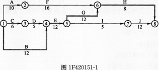 (1)按A→D→I顺序组织施工,则网络计划变为如图1F420151-2所示: