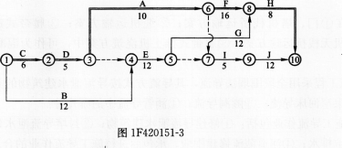 (2)如按D→A→I顺序组织施工,则网络计划变为如图1F420151-3所示: