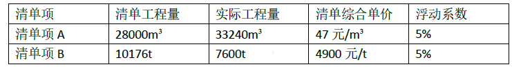 在总承包施工合同中约定“当工程量偏差超出15%时,该项增加部分或剩余部分综合单价按5%进行浮动”。施工单位编制竣工结算时,其相应工程数量、单价等数据详见下表: