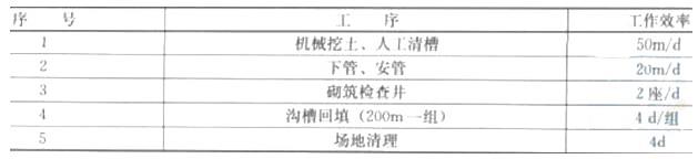 项目部承建的雨水管道工程管线总长为1000m,采用直径为600mm的混凝土管,柔性接口;每50m设检查井一座。管底位于距地表下4m,无地下水,采用挖掘机开槽施工。项目部根据建设单位对工期的要求编制了施工进度计划。编制计划时,项目部使用的指标见下表:
