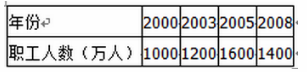 某行业2000年至2008年的职工数量(年底数)的记录如下: