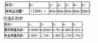 某公司正考虑建设一个新项目。根据市场调查和财务部门测算,项目周期为5年,项目现金流量已估算完毕,公司选择的贴现率为10%,具体数据见项目现金流量表及现值系数表。