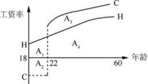 注:曲线H代表18岁高中毕业后不去上大学而立即进入劳动力市场谋求就业情况下的终生收入曲线。曲线C代表高中毕业后先去上四年大学然后再谋求就业情况下的成本——收益曲线。