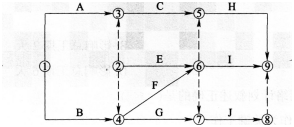 某分部工程的双代号网络计划如下图所示,图中的绘制错误有()。