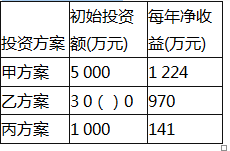 某建筑工程公司欲在自己的土地上开设商店,以补充任务不足时施工队伍的开支。根据预测,商店的规模可以有甲、乙、丙三种,寿命期均为10年,其初期投资额、每年净收益见下表。已知(P/