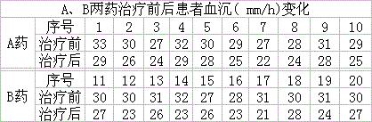 A、B两药治疗一个疗程,测得治疗前后的血沉(mm/h),见下表(假定