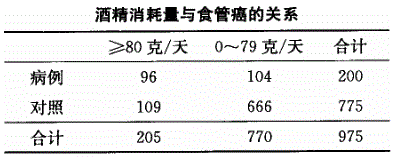 有人在1982-1984年进行了一次有关食管癌的病例对照研究。病例为1982年2月到1984年5月在某市级医院诊断的男性食管癌患者,对照是从人群选取的样本。对两组研究对象都进行访问调查,询问了有关饮食等方面的情况,其中包括饮酒情况。