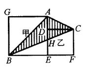 右图中的甲和乙都是正方形,BE= 6厘米,EF=4厘米。那么,阴影部分ABC的面积是多少平方厘米?( )