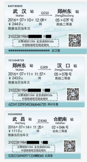 经过前期侦查,某铁路公安局锁定了一名涉嫌盗窃旅客财物的犯罪嫌疑人刘某。随后,民警在某火车站将刘某当场控制,并从其身上发现三张他本人使用过的火车票和两台平板电脑。根据这三张火车票的票面信息,民警可作出的恰当推断有:( )。