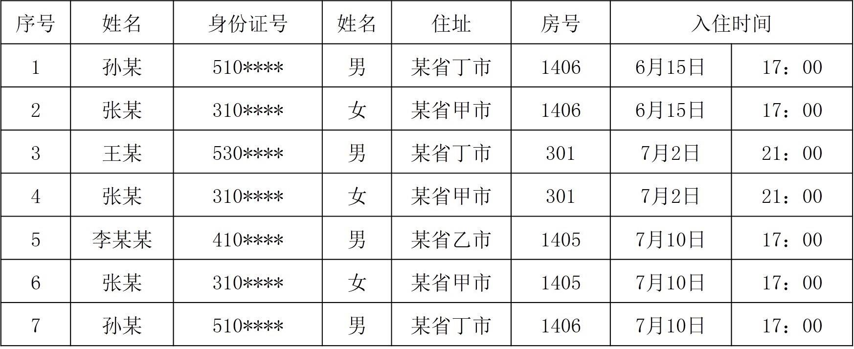 有过贩毒史的李某某(男,某省乙市人,2017年曾因贩毒被处理)进入甲市后在甲市一四星级酒店登记住宿时触发预警系统。7月11日甲市民警小孙负责在工作平台查询李某某住宿信息及是否有同行同住人,查询到的相关的信息如下表所示。结合该表,下列分析正确的有:
