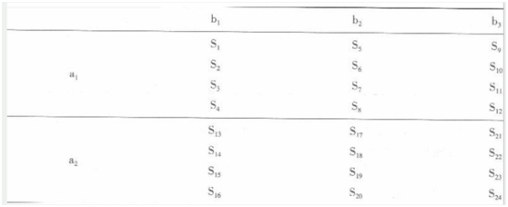 下表所示的实验设计方案(a、b为两个自变量,S为被试),,在该实验设计中,存在的系统误差主要是