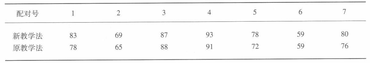 为了研究两种教学方法的效果,研究者选择了七对智商、年龄、阅读能力、家庭条件相近的儿童进行实验,结果见下表: