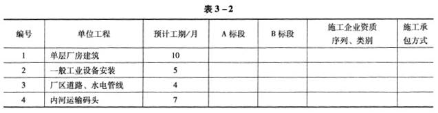 某低压电器开关柜组装生产项目施工招标。该工程项目包括4个单位工程(见表3-2)。按照建筑业施工总承包和专业承包的企业资质类别和施工组织管理的关联性要求,划分出A、B两个标段,并计划分两次组织招标,工期最长的A标段首先安排招标。