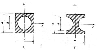 面积相等的两个图形分别如图a)和图b)所示。它们对对称轴y、z轴的惯性矩之间关系为: