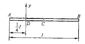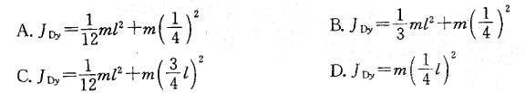 图示匀质杆AB长l,质量为m。点D距点A为1/4l。杆对通过点D且垂直于AB的轴y的转动惯量为: