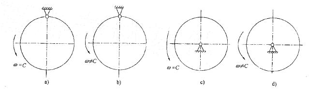 图示均质圆盘作定轴转动,其中图a)、c)的转动角速度为常数(ω=