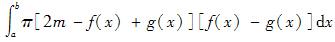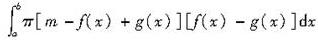 设f(x)、g(x)在区间[a,b]上连续,且g(x)<f(x)<m(m为常数),由曲线y=g(x),y=f(x),x=a及x=b所围平面图形绕直线y=m旋转而成的旋转体体积为( )。