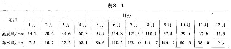 某膨胀土地区的多年平均蒸发力和降水量值如表8-1所示。