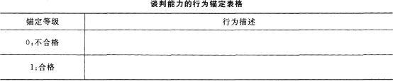 某家用电器生产企业准备招聘一名采购经理,“谈判能力”是需要考查的一项重要内容,同时在今后的绩效考评中,也会将该能力列入采购经理的PCI指标进行考核。 请回答: 下表是该公司用PCI指标对“谈判能力”进行考核的表格,请完成该指标各锚定等级的行为描述。
