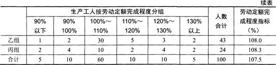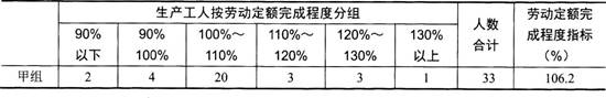 某车间100名员工劳动定额完成程度经过分组后,得下表中的统计结果,试分析整个车间劳动定额完成情况,企业应采取何种措施。