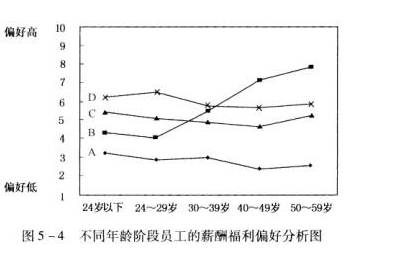 图5-4是某公司不同年龄段员工对可供自由选择的薪酬福利的偏好的调查结果。