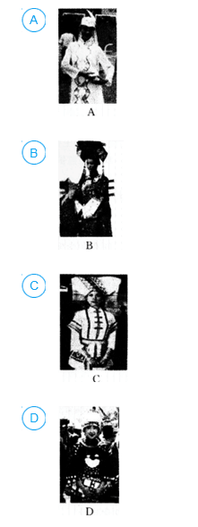 下列我国少数民族服饰的图片中,属于苗族的一幅是( )。![]()