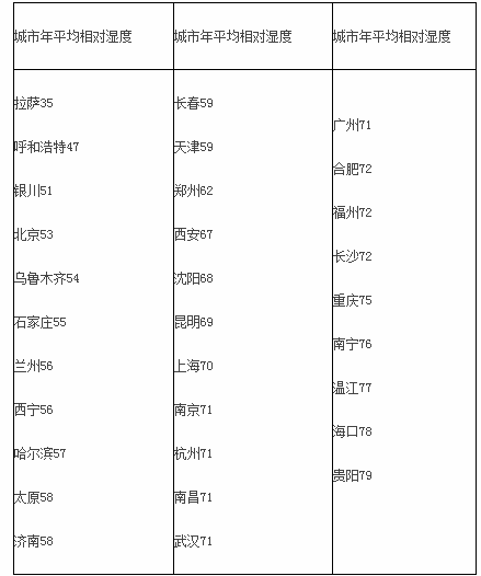 表3 -1是2006年中国31个主要城市年平均相对湿度的数据(单位:%)。