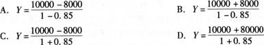 在一个经济社会中,如果自发消费为10000亿元,投资为8000亿元,边际消费倾向为0.85,则均衡产出为()。![]()