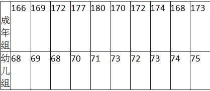 对10名成年人和10名幼儿的身高(单位:厘米)进行抽样调查,结果如下: