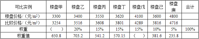 甲房地产经纪公司在制定某房地产项目的价格时,采用比较定价法,表2-1是一个市场比较楼盘的打分表。