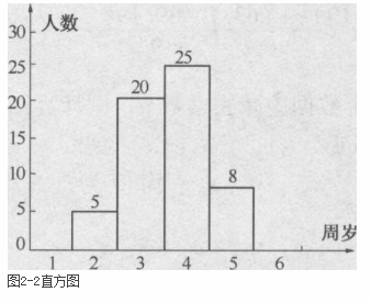某幼儿园有58名小朋友,其年龄(单位:周岁)的直方图如图2-2所示,则小朋友年龄的众数为( )。