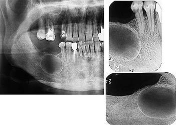 发现下前牙变色,唇侧牙龈一肿物一月余,经X 线检查,结果如图。最可能的诊断是 ( )