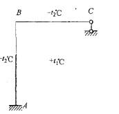 图示结构(杆件截面为矩形)在温度变化时,已知t1>t2。若规定内侧受拉的弯矩为正,则各杆端弯矩为: