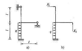 如图a)所示结构,取图b)为力法基本体系,EI=常数,Δ1P为:![]()
