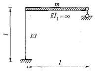 图示体系的自振频率(不计竖杆自重)为:![]()