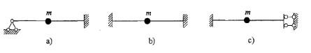 图示三种单自由度动力体系中,质量m均在杆件中点,各杆EI、l相同。其自振频率的大小排列次序为: