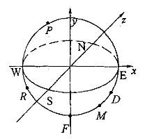 如图所示,投影球的下极点F作为发射点将四个点进行赤平投影,其中哪个点能投影到赤平面上?