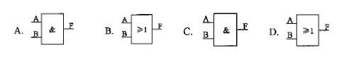 下列逻辑符号中,能实现F=AB逻辑功能的是( )。