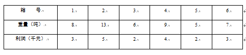 载重量限24吨的某架货运飞机执行将一批金属原料运往某地的任务。待运输的各箱原料的重量、运输利润如下表所示。经优化安排,该飞机本次运输可以获得的最大利润为 ( ) 千元。