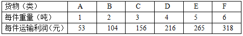 用一辆载重量为 10 吨的卡车装运某仓库中的货物(不用考虑装车时货物的大小),这些货物单件的重量和运输利润如下表。适当选择装运一些货物各若干件,就能获得最大总利润( )元。