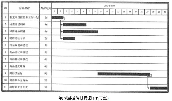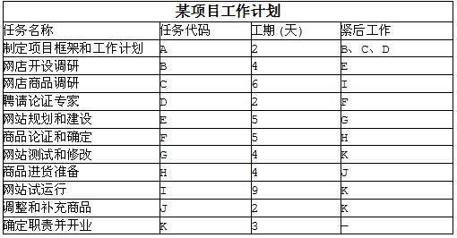 阅读以下说明,根据要求回答下面问题[说明]赵新锐是一名大学生,他申请了学校的大学生创新创业项目,计划建立一个网上商店,他制定的工作计划如下表所示。