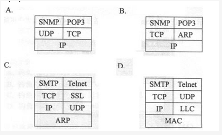 Intemet涉及许多协议,下面的选项中能正确表示协议层次关系的是()。