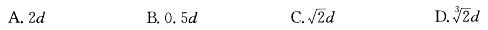 直径为d的实心圆轴受扭,为使扭转最大切应力减小一半,圆轴的直径应改为:![]()